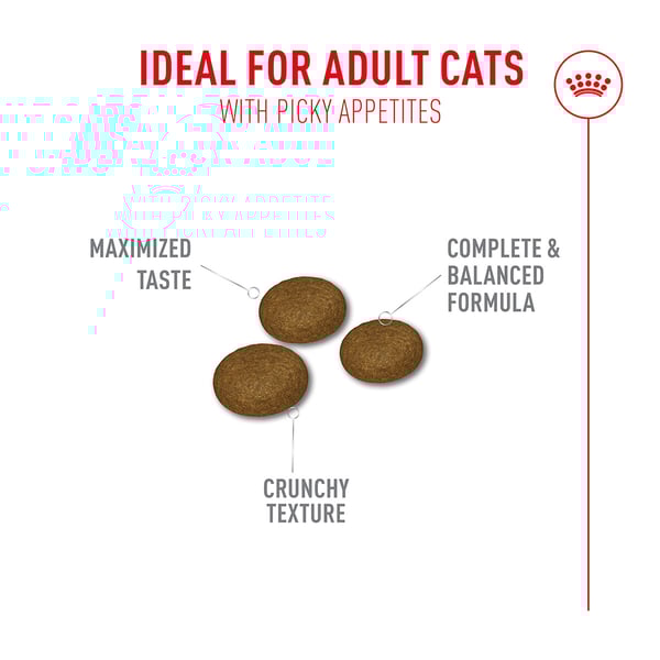 ROYAL CANIN Fussy byla pečlivě přizpůsobena zvláštním potřebám vybíravých koček a nabízí krmivo, které chutná i těm nejvybíravějším kočkám.