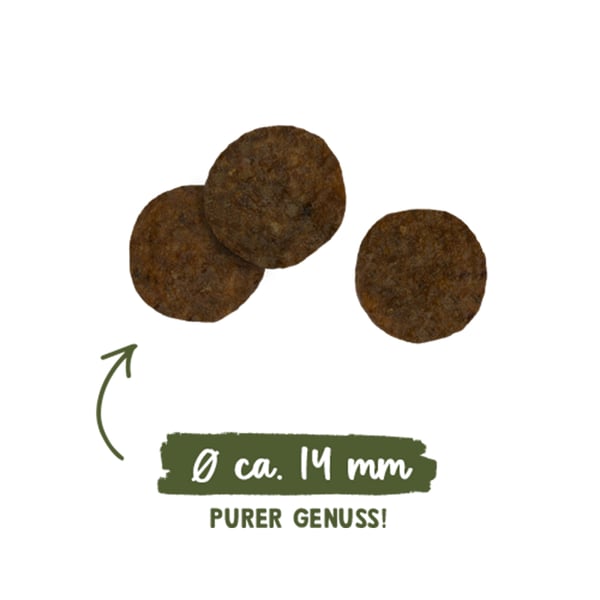Tyto údaje jsou orientační. Individuální potřeba závisí na faktorech, jako jsou věk, plemeno, aktivita a podmínky chovu. Při zvýšené aktivitě prosím zvyšte množství krmiva. Prosím, vždy zajistěte čerstvou vodu.