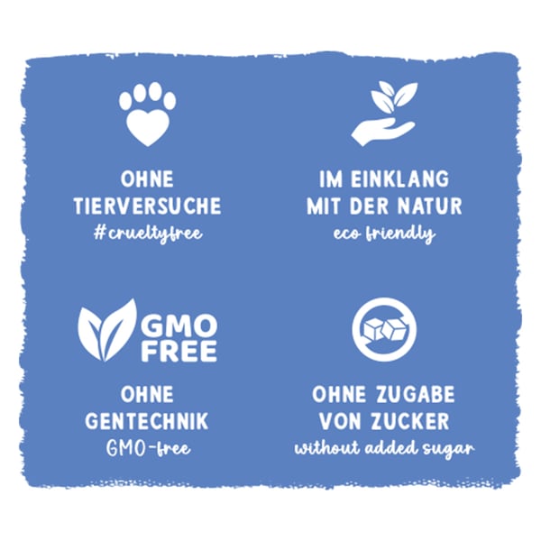 Doplňkové látky:vitamin E: 25 mg, biotin: 25 μg, Taurin: 450 mg, zinek jako oxid zinečnatý: 20 mg, jód jako jodát vápenatý, bezvodý: 0,75 mg,
