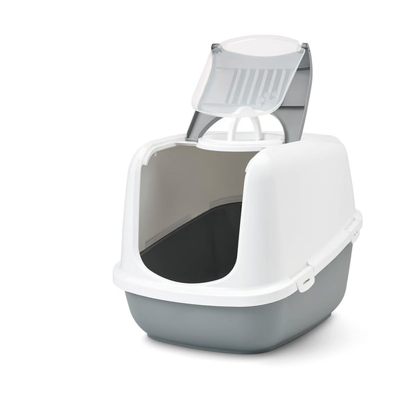 Kočičí toaleta SAVIC Nestor Jumbo nabízí velkorysé řešení pro majitele koček, kteří kladou důraz na funkčnost a styl. Díky svému modernímu designu se bez problémů začlení do vašeho domova. Sklopná přední část umožňuje rychlé a snadné čištění, aniž byste museli odstraňovat horní polovinu. Tato praktická funkce šetří čas a zajišťuje, že kočičí toaleta zůstává vždy čistá.