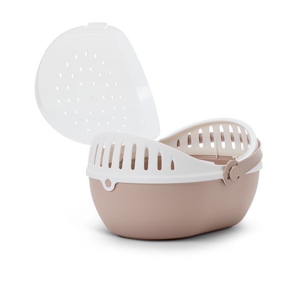 SAVIC Kleintier Transportbox Elmo velký v šampaňské růžové vám nabízí praktické řešení pro bezpečnou přepravu vašeho malého zvířete. Tento transportní box je vyroben z robustního plastu a je ideální pro zvířata do hmotnosti 3 kg. Ať už musíte k veterináři nebo plánujete cestu, s tímto boxem můžete své zvíře bezpečně a pohodlně přepravovat. Otevírání shora umožňuje snadný přístup, takže můžete své zvíře bez stresu vložit nebo vyjmout.