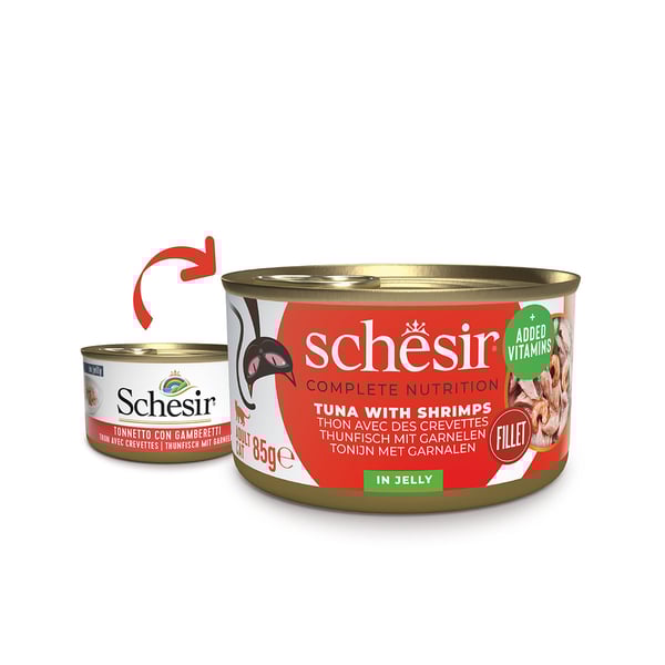 Schesir Cat tuňák s krevetami v želé používá výhradně 100% přírodní ingredience, aby vaší kočce poskytl kvalitní jídlo bez umělých barviv nebo konzervačních látek. Dušené filety z tuňáka jsou pečlivě zpracovány ručně, aby byla zachována přírodní kvalita a chuť.