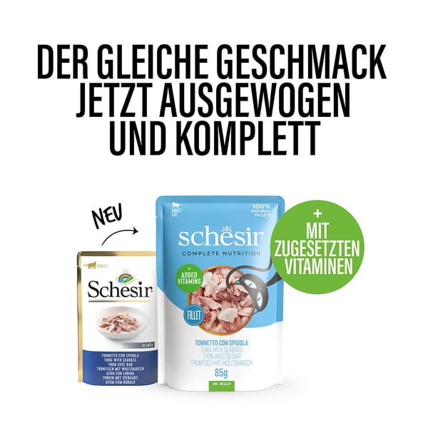 Schesir Cat tuňák s mořským vlkem v želé používá výhradně 100% přírodní ingredience, aby vaší kočce poskytl kvalitní jídlo bez umělých barviv nebo konzervačních látek. Dušené filety z tuňáka jsou pečlivě zpracovány ručně, aby byla zachována přírodní kvalita a chuť.