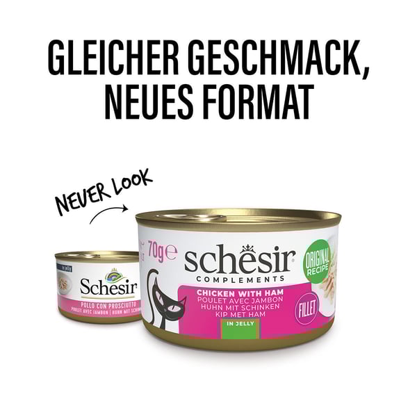 Schesir Cat kuře se šunkou v želé je vynikající jako doplňkové krmivo v kombinaci se suchým krmivem. Přírodní kvalita ingrediencí a snížený obsah sacharidů respektují potřeby vaší kočky jako masožravce. Kombinujte jemné a chutné filety pro pestrou a přiměřenou výživu.