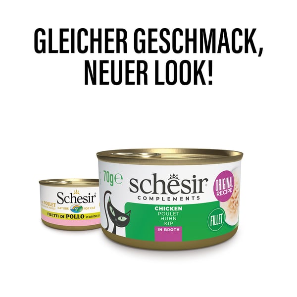 Vylepšená receptura Schesir zajišťuje vyvážené zásobování bílkovinami, vitamíny a důležitými minerály. Vysoký obsah vlhkosti podporuje příjem tekutin a přispívá ke správné funkci ledvin. Tak podporujete pohodu vaší kočky přirozeným způsobem.