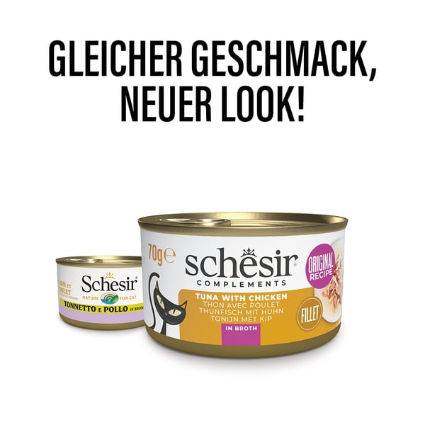 Schesir Cat tuňák s kuřetem ve vývaru je vynikající jako doplňkové krmivo v kombinaci se suchým krmivem. Přírodní kvalita ingrediencí a snížený obsah sacharidů respektují potřeby vaší kočky jako masožravce. Kombinujte jemné a chutné filety pro pestrou a přiměřenou výživu.
