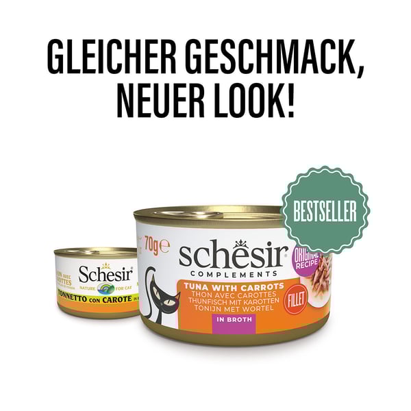 Schesir Cat tuňák s mrkví ve vývaru je vynikající jako doplňkové krmivo v kombinaci se suchým krmivem. Přírodní kvalita ingrediencí a snížený obsah sacharidů respektují potřeby vaší kočky jako masožravce. Kombinujte jemné a chutné filety pro pestrou a přiměřenou výživu.