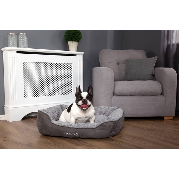 Pelíšek Cosy Box má vnější podšívku semišového vzhledu a úžasně měkkou plyšovou vnitřní podšívku, aby váš pes mohl jemně vplout do říše snů. Výplň z recyklovaných udržitelných vláken poskytuje psovi optimální oporu. Protiskluzová úprava na spodní straně zabraňuje posunutí pelíšku.