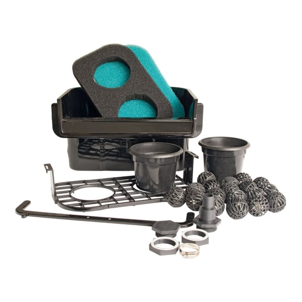 včetně filtračních médií: filtrační rohož modrá (hrubá), filtrační rohož černá (jemná), biokoule