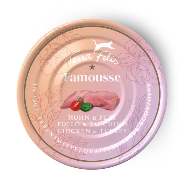 Všechny suroviny v Terra Felis kuře a krůta jsou ve 100% potravinářské kvalitě. Tato vysoká kvalita a čerstvost se odrážejí v lahodné a jemné vůni menu, což vede k vysoké akceptaci u koček.