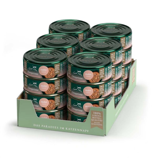 Se šesti různými recepturami nabízí Terra Felis Souprème pestrou stravu pro vaši kočku. Kombinace hovězího, kuřecího, krůtího, lososa, kachny a jehněčího v sametovém vývaru přitahuje i ty nejnáročnější kočky. Tyto polévky jsou ideální pro poskytnutí vyváženého jídla vaší kočce, které je jak chutné, tak výživné.