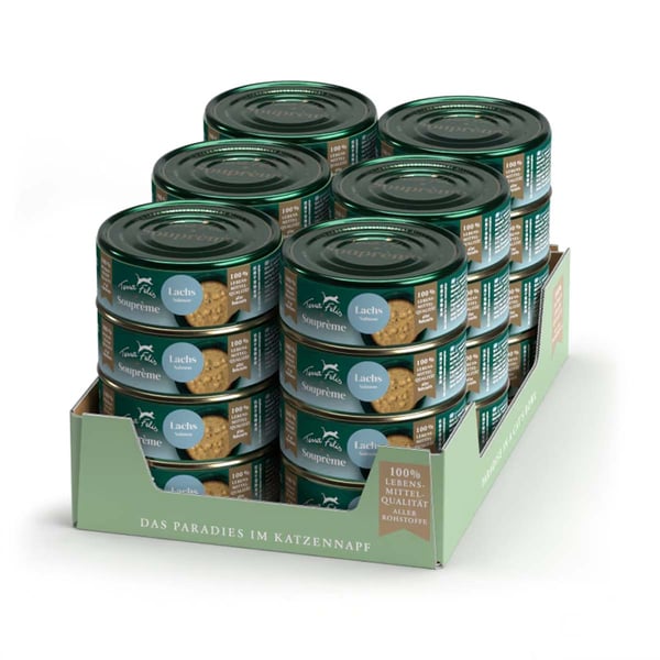 Se šesti různými recepturami nabízí Terra Felis Souprème pestrou stravu pro vaši kočku. Kombinace hovězího, kuřecího, krůtího, lososa, kachny a jehněčího v sametovém vývaru přitahuje i ty nejvybíravější kočky. Tyto polévky jsou ideální pro poskytnutí vyváženého jídla vaší kočce, které je jak chutné, tak výživné.