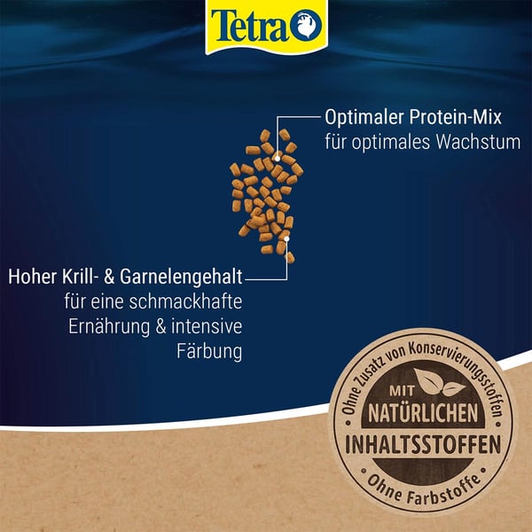 Tetra Cichlid tyčinky je vyvážené základní krmivo pro všechny masožravé cichlidy. Z větší části se skládá z mrazem sušených krevet, které jsou mimořádně bohaté na proteiny. Mastné kyseliny obsažené v proteinu posilují odolnost a fungují jako výborný zdroj energie. Krmivo obsahuje přírodní karotenoidy podporující krásnější zbarvení vašich miláčků.