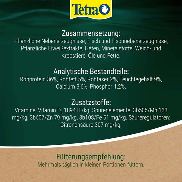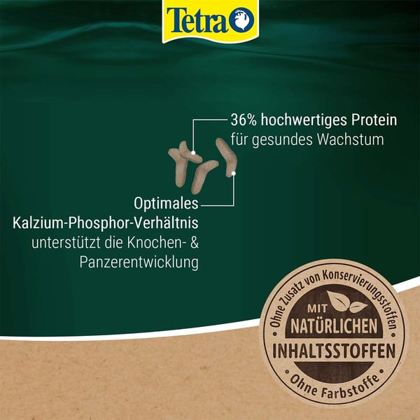 Speciálně vyvinutá receptura Tetra ReptoMin sází na přírodní složky a vyhýbá se umělým barvivům a konzervačním látkám. Toto kvalitní složení zajišťuje, že vaše želva dostává pouze ty nejlepší živiny. Optimální poměr vápníku a fosforu navíc podporuje vývoj silných kostí a zdravého krunýře.