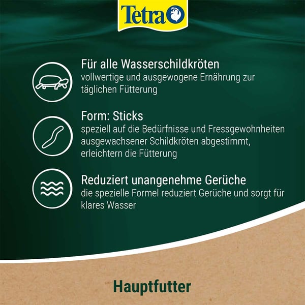 Tetra ReptoMin Sticks nabízejí vyváženou výživu, která byla speciálně vyvinuta pro dospělé vodní želvy. Krmné tyčinky obsahují 36 % kvalitního proteinu, který podporuje růst a přispívá k posílení imunitního systému. Výživná formule je perfektně přizpůsobena potřebám vaší želvy.
