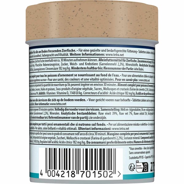 Tabletové krmivo Tetra TabiMin je kompletní krmivo speciálně pro okrasné ryby, které se živí potravou ze dna – se všemi životně důležitými živinami. Stabilizovaný vitamin C zajišťuje zvýšenou obranyschopnost, podporuje zdravý růst a zamezuje nutričním deficitům.