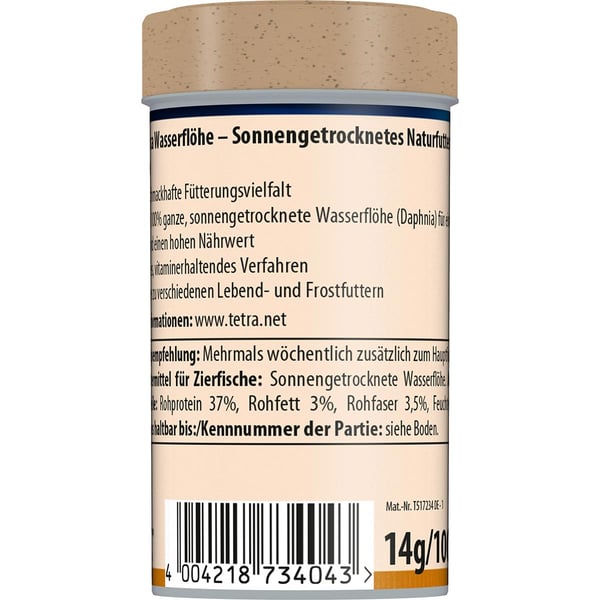 TetraDelica dafnie – delikátní pochoutka ke svačince. Obsahuje 100% sluncem vysušené vodní blechy. Šetrně vysušená sluncem, resp. mrazem nabízí každá pochoutka TetraDelica plnou sílu živin přírodního krmiva.