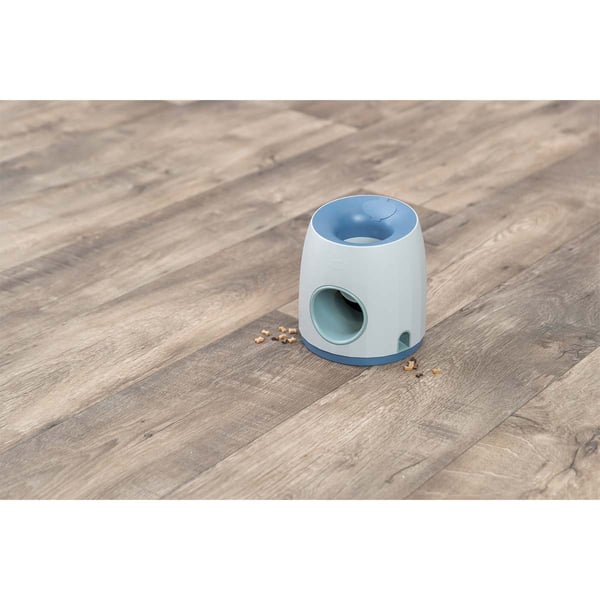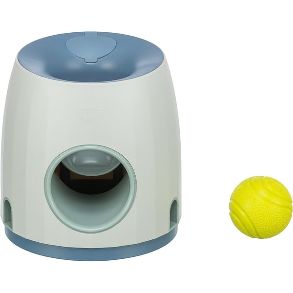 Trixie Dog Activity strategická hra Ball & Treat je hračka podporující inteligenci s mechanickým dávkovačem pamlsků. Pamlsky se naplní shora a když pes vloží míček do horní části hračky, vycházejí pamlsky ze spodní části na dvou stranách. Velikost pamlsků může být maximálně ø 15 mm. Dodává se s návodem k výcviku a odpovídá 3. stupni obtížnosti. Je tedy vhodná pro profesionály.