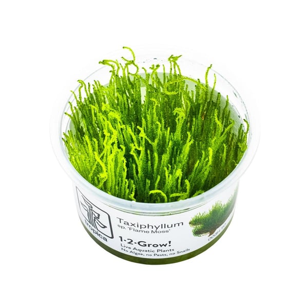 Tropica Moospflanze Taxiphyllum sp. 'Flame Moss' je vynikající volbou pro dodání jedinečného vzhledu vašemu akváriu. Se svou zvláštní růstovou formou, která připomíná tmavě zelený táborák, poskytuje fascinující vizuální zvýraznění. Husté, vzpřímené a mírně zvlněné výhonky dosahují výšky 5 až 15 cm a dokonale se hodí pro vodorovné plochy ve vašem akváriu.