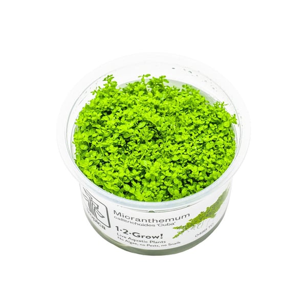 Objevte s Tropica půdopokryvnou rostlinou Micranthemum callitrichoides 'Cuba' jednu z nejmenších akvarijních rostlin na světě. Tato rostlina ohromuje svými drobnými, kulatými listy, které se plazí po dně. Pokud ji zasadíte v malých svazcích s odstupem několika centimetrů, rychle se rozšíří a vytvoří hustý, souvislý koberec na dně vašeho akvária.