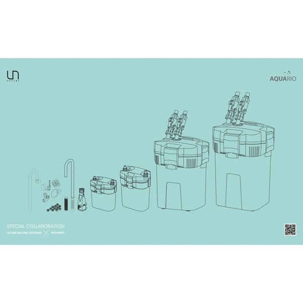 UNS Delta 30: Vodní víčko O-kroužek, kanistr a svorka, 2x matice hadicové spony, závěsná manžeta, filtr O-kroužek, oběžné kolo s krytem, 2x hadicové vedení, 2x Aquario Neo držák, Aquario Neo vstup a výstup, víčko filtru, víčko koše na média, 2x koš na média, 1x uhlíková patrona, Aquario Neo média, 1x bio houba
