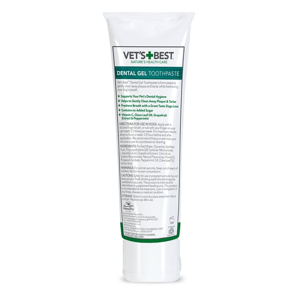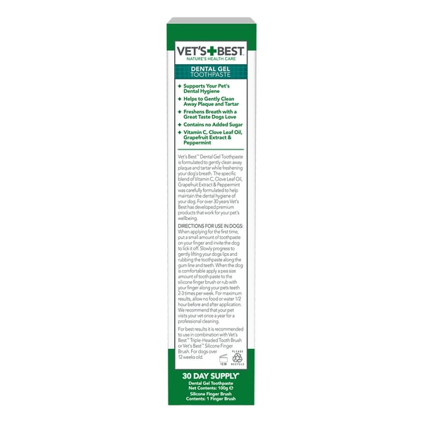 Pro optimální výsledky se doporučuje používat zubní pastu jako součást komplexního programu péče o zuby. Kombinujte ji s Vet's Best zubním kartáčkem se třemi hlavami nebo Vet's Best prstovým kartáčkem a Vet's Best osvěžovačem dechu pro psy. Tak získáte komplexní řešení pro péči o zuby vašeho psa, které podporuje mezi každoročními čištěními u veterináře.