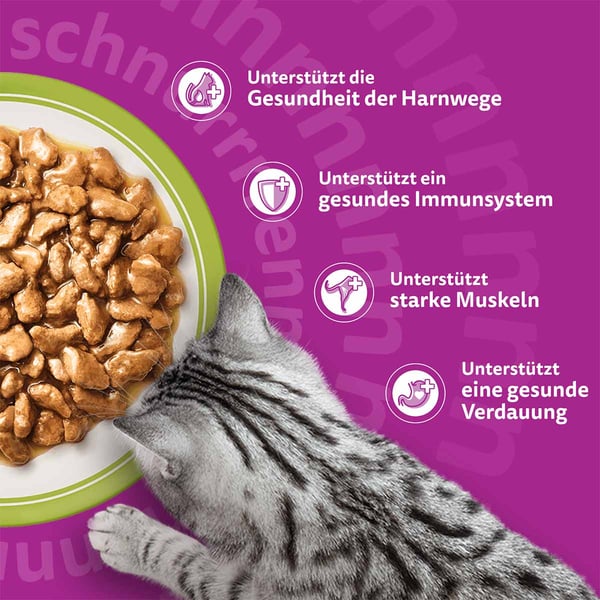 Vysoce kvalitní krmivo pro starší kočky v omáčce s chutným kuřecím masem a rybou. Mix kapsiček pro starší kočky je dodáván v praktickém 85g sáčku a je přizpůsoben potřebám vaší sametové tlapky. Speciálně připravené tak, aby si zachovalo přirozenou kvalitu a chuť vysoce kvalitních surovin. Díky našim oblíbeným krmivům bude vaše kočka spěchat k misce rychleji než kdykoli předtím. Od hravých koťat až po báječně staré kočky – naše chutné receptury obsahují vše, co vaše kočka vzhledem ke svému věku potřebuje. Připraveno tak, aby se ozývalo spokojené vrnění... v době krmení i mimo něj.